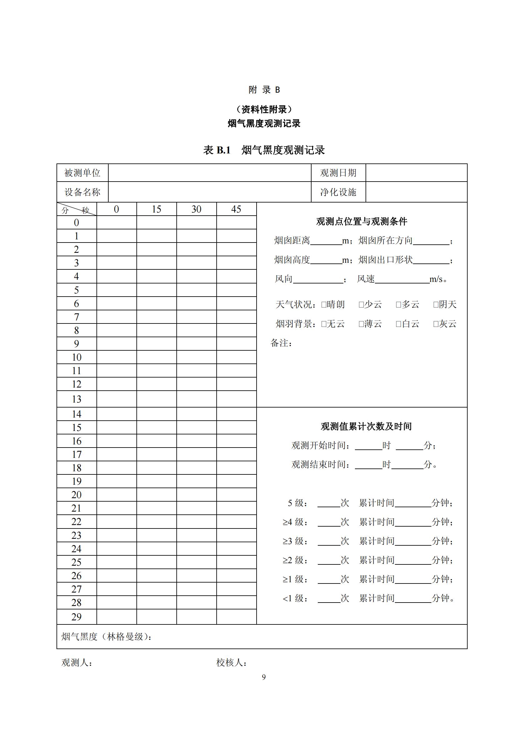 2.12 每分鐘觀測(cè)4次,觀察者不宜一直盯著煙氣觀測(cè),而應(yīng)看幾秒鐘然后停幾秒鐘,每次觀測(cè)(包括觀看和間歇時(shí)間)約15秒,連續(xù)觀測(cè)煙氣黑度的時(shí)間不少于30分鐘。每次觀測(cè)15秒記錄一個(gè)讀數(shù),連續(xù)觀測(cè)煙氣黑度的時(shí)間30分鐘,記錄120次觀測(cè)讀數(shù),對(duì)于煙氣排放穩(wěn)定的污染源,可減少觀測(cè)頻次,每分鐘觀測(cè)2次,記錄60個(gè)讀數(shù)。